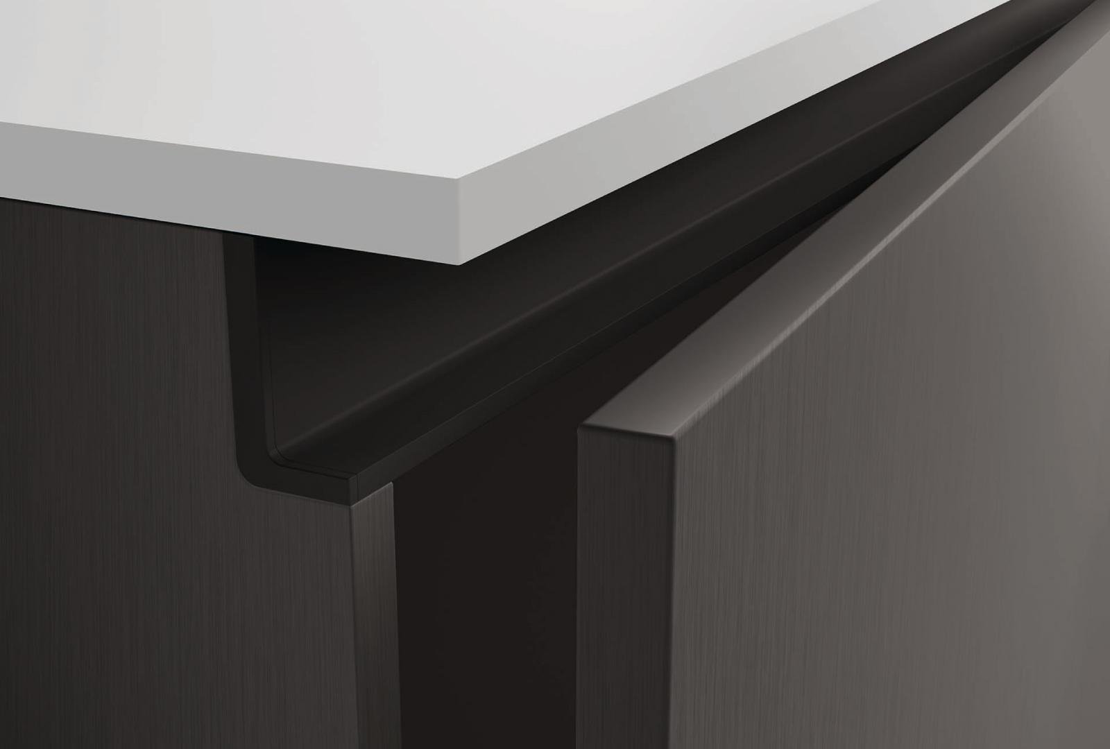 The versatile door design can be utilized in multiple room settings beyond the kitchen. The handless metal profile trim adds to the sleek design and can be finished in a contrasting or matching finish, including timber for added customisation.