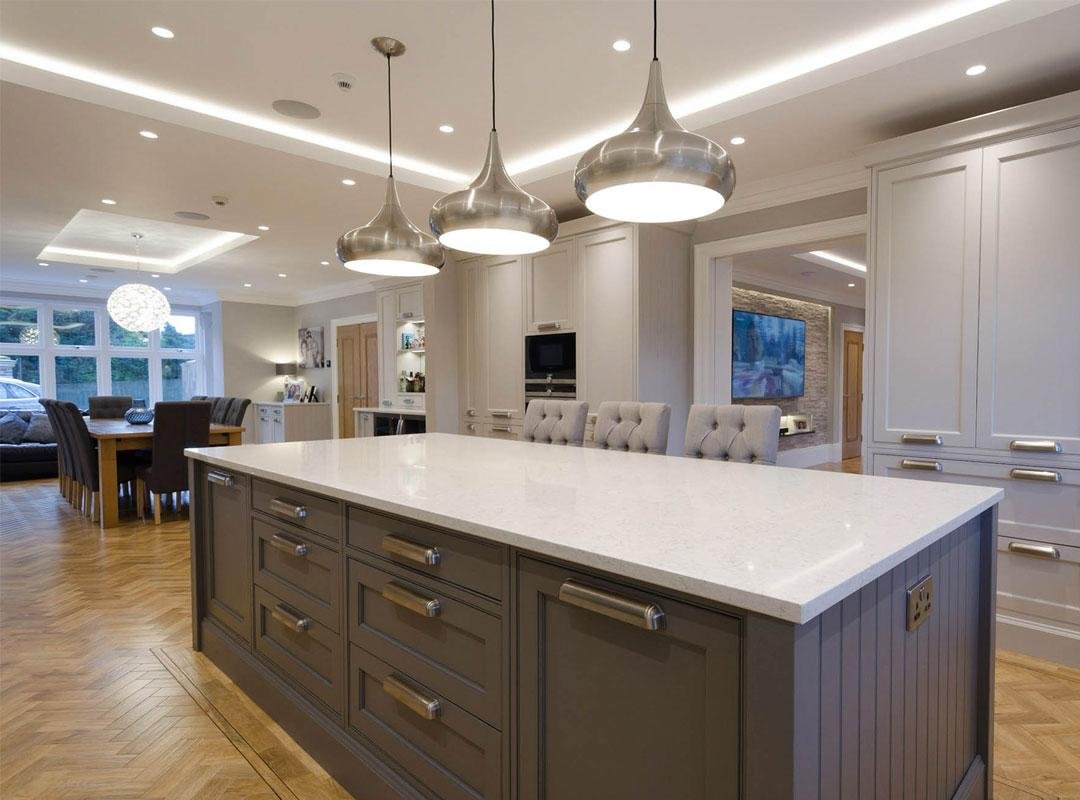 You can choose from our exclusive range of stone work surfaces to truly complement your stunning new kitchen.