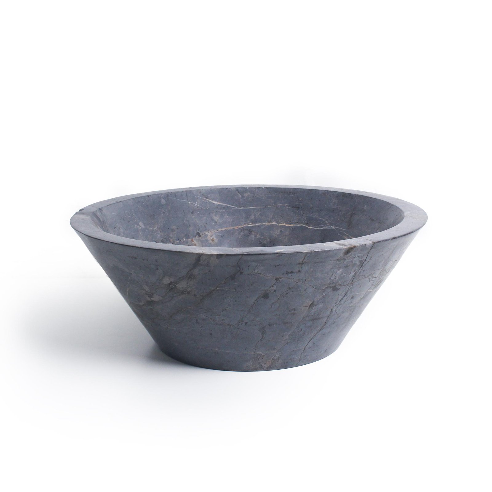 400mm diameter x 150mm height wash basin with waste hole fabricated from solid Nero Marquina tumbled marble.