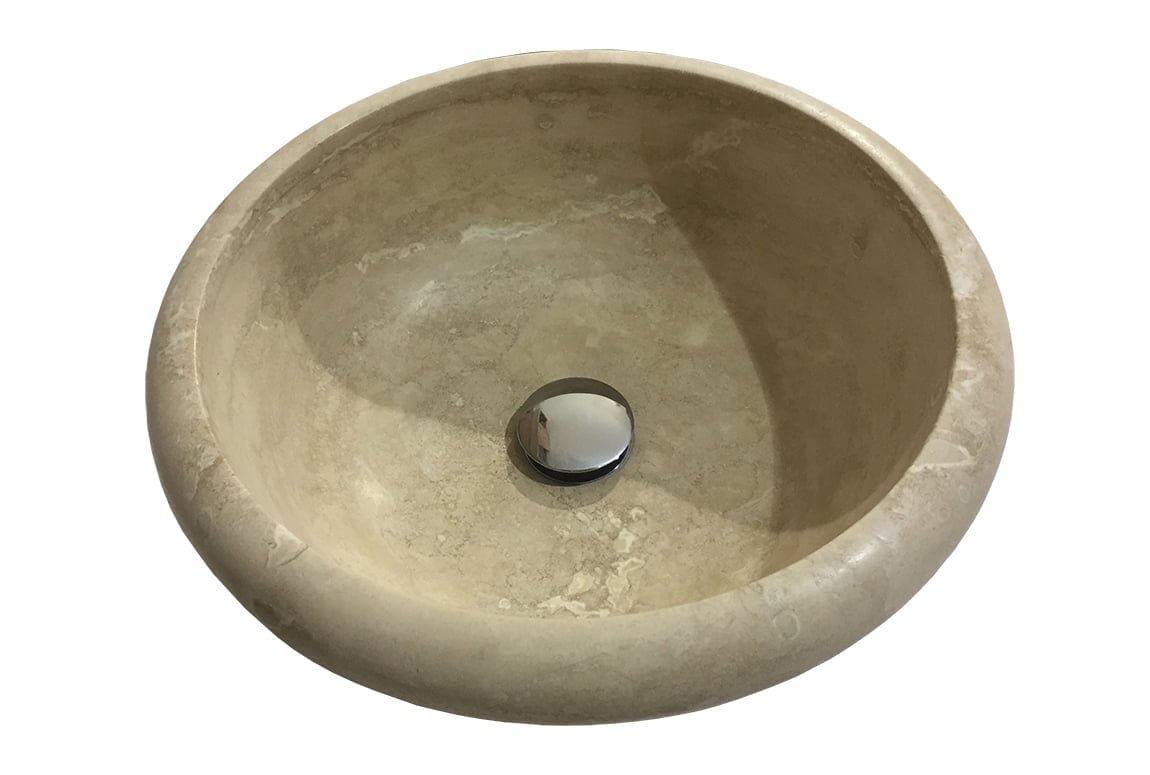 Premium Cream Travertine is an attractive looking natural stone that compliments both traditional and contemporary settings and colour schemes. Travertine is a compacted form of Limestone formed in hot springs and characterised by interesting markings, pitted holes and troughs in its surface. The Premium Cream Travertine wash basin has been honed for a smooth and matted finish that’s well suited to high traffic areas.