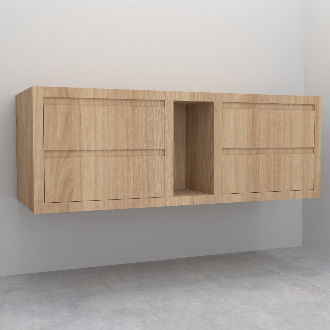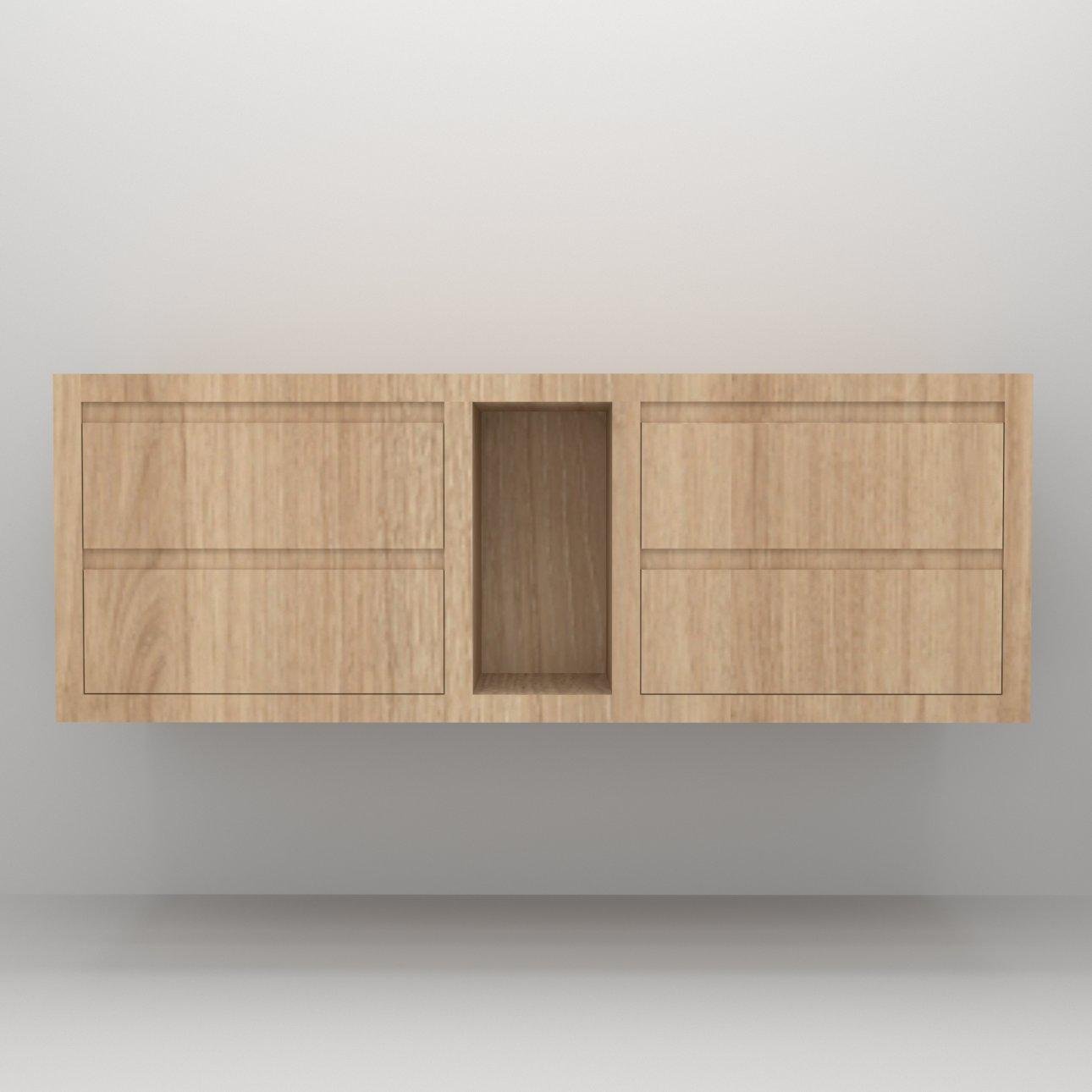 Customize your sanctuary with our solid oak wall-hung vanity unit, offering four drawers and a shelf for effortless storage. Elevate your experience by selecting from our array of natural stone and engineered quartz worktop options. Craft your ideal space with personalized luxury, tailored just for you.