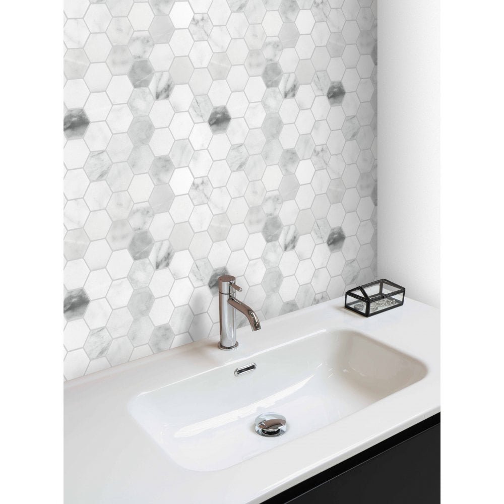 Elevate your space with the Carrara Honed Marble Hexagon Mosaic Tile. Showcasing the timeless beauty of Carrara marble in a chic hexagon pattern, this tile adds a touch of modern elegance to any room. The honed finish offers a smooth, matte surface that enhances the marble’s natural veining, while ensuring durability and easy maintenance. Perfect for walls and floors, this mosaic tile creates a stunning, sophisticated look that transforms your home into a luxurious haven. Experience the perfect blend of classic charm and contemporary style.