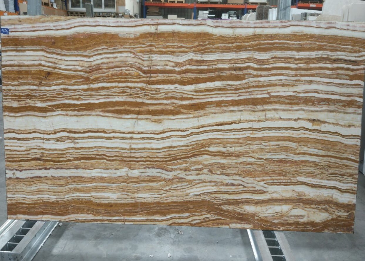 Discover the epitome of luxury and elegance with our Legno Onyx slab. Featuring a mesmerizing blend of creamy beige and warm amber hues, this exquisite natural stone radiates sophistication and charm. Each slab boasts unique veining and translucency, making it a stunning centerpiece for any interior design project. Perfect for countertops, wall accents, and custom installations, the Legno Onyx slab is your gateway to timeless beauty and unparalleled style. Elevate your space with the distinctive allure of Legno Onyx—where nature meets opulence.