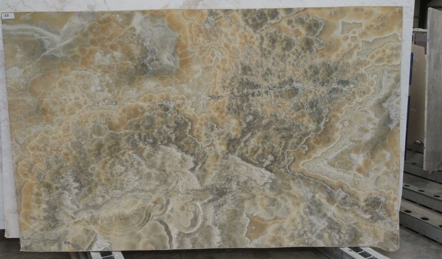 Introducing the Zeon Onyx Slab – the epitome of luxury and elegance in natural stone. This exquisite slab boasts a deep, mesmerizing black hue interwoven with striking white and gold veining, creating a timeless masterpiece for any interior. Perfect for countertops, flooring, or feature walls, the Zeon Onyx Slab not only elevates the aesthetic appeal of your space but also promises unmatched durability and sophistication. Transform your environment with the Zeon Onyx Slab – where nature’s beauty meets impeccable craftsmanship.