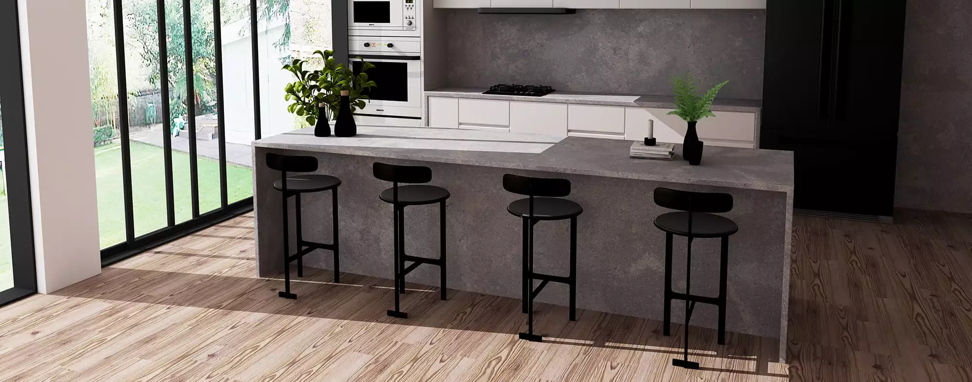 Concrete quartz gets its name from its similarities shared with concrete, a brutalists dream. The exposed and rough look adds texture and character to feature pieces but can also blend subtly into larger more vast spaces.